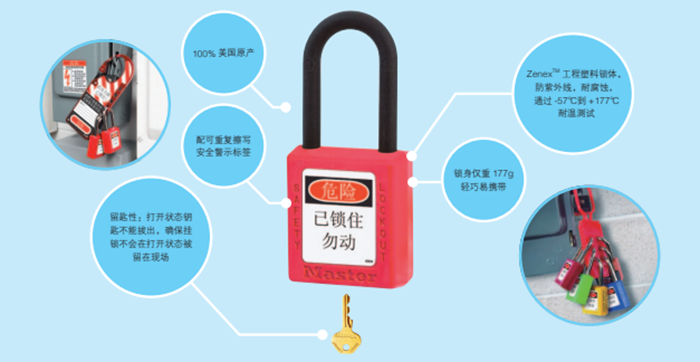 電源開關(guān)、氣源開關(guān)、管道閥門開關(guān)、非作業(yè)人員不能靠近等,這些設(shè)備、場合都需要加上安全鎖具,防止失誤操作,并向作業(yè)人員作出警示。使用安全鎖具的重要作用在于正確鎖定、關(guān)閉或隔離作業(yè)對象,使工作人員在進(jìn)行作業(yè)時,能有效地使用安全鎖具進(jìn)行作業(yè)輔助,以防止意外發(fā)生。