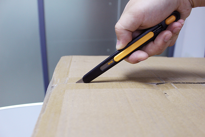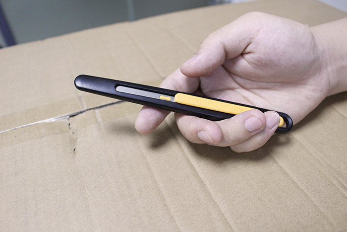 5. 完成修邊作業(yè)后,放松握緊安全刀具的掌心及讓刀片慢慢地自動(dòng)回彈到刀柄內(nèi)。